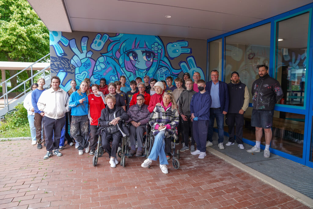 Ein einzigartiges Projekt des zdi-Zentrums Lippe.MINT und Rapschool NRW hat die Wände der Sekundarschule Nordlippe und des Altenheims Friedrich Winter Haus in ein farbenfrohes Kunstwerk verwandelt. Schülerinnen und Schüler der Sekundarschule Nordlippe haben im Projekt „StreetArt meets MINT-Production“ in Zusammenarbeit mit Senioren des Altenheims Friedrich-Winter-Haus Graffiti gestaltet – eine kreative Begegnung, die nicht nur das Schulgebäude und das Altenheim verschönerte, sondern auch einen wertvollen Austausch zwischen den Generationen förderte.